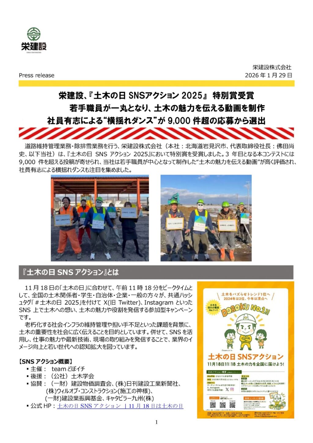 栄建設、『土木の日 SNSアクション 2025』特別賞受賞