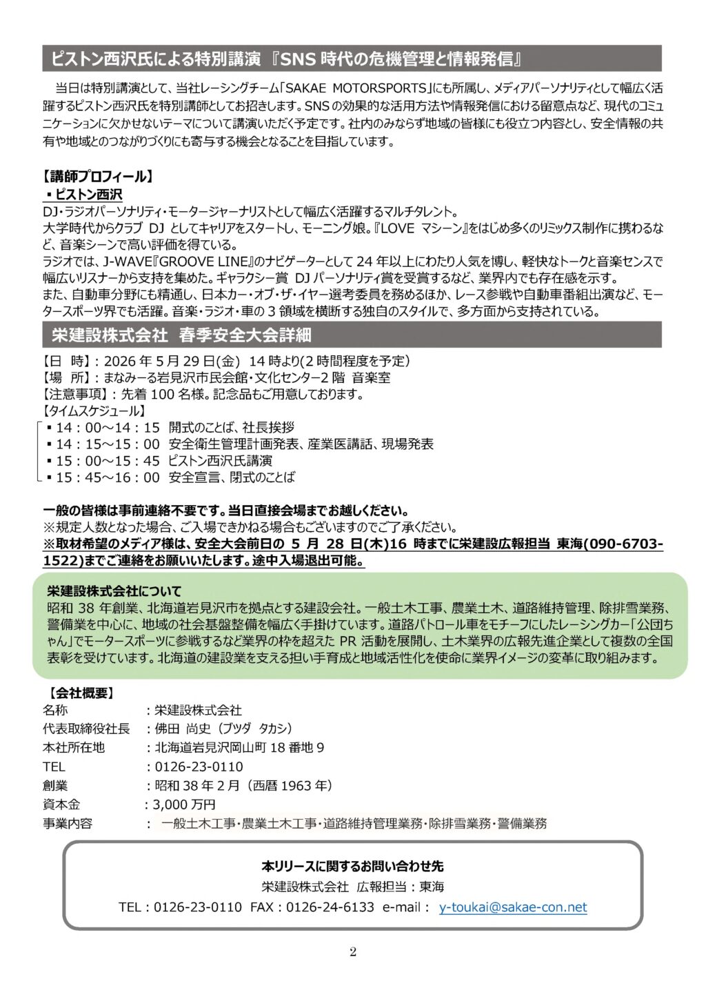 栄建設の春季安全大会、今年も一般公開
