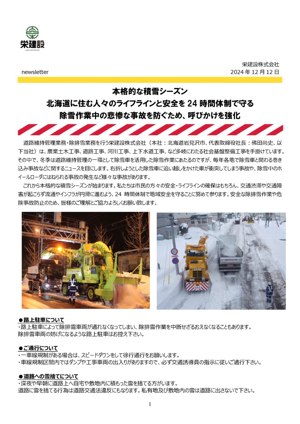 本格的な積雪シーズン 除雪注意喚起(ニュースレター)
