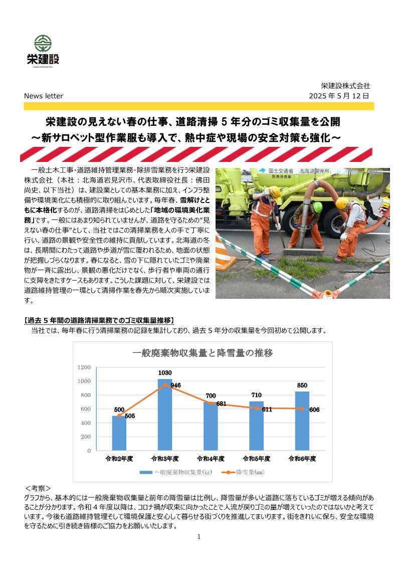 栄建設の見えない春の仕事~道路維持管理業務について~(ニュースレター)