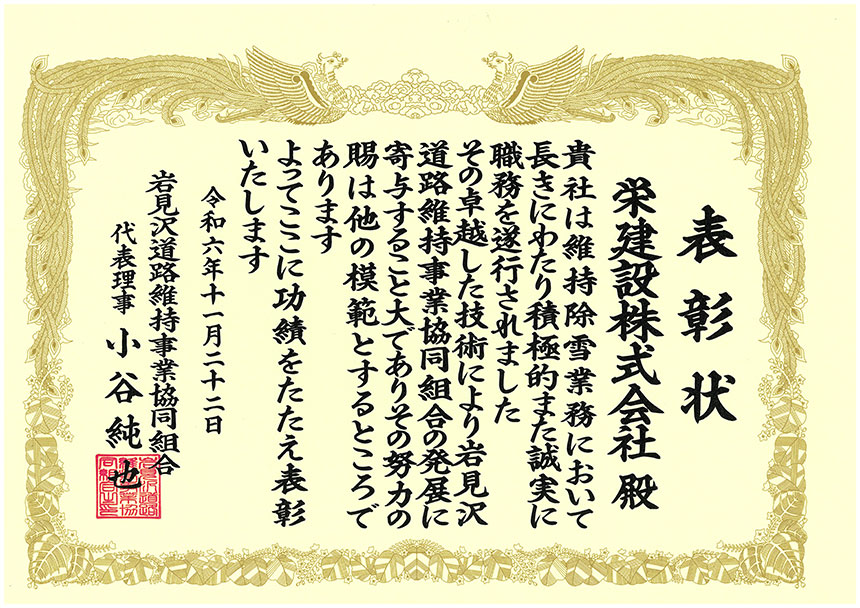 令和6年 道路維持組合 維持表彰